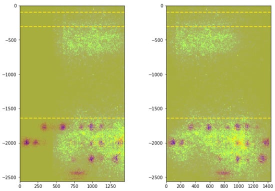 Keyboard area covered visually and by touch, in the original dataset (left) and after shifting at the optimal point (right).