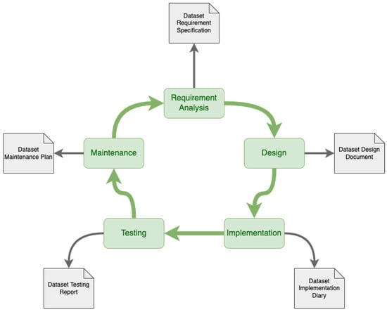 In [33], a strong argument is made towards the establishment of a framework for the development of datasets to be used in AI/ML research, so that these datasets can be made accountable (Figure 14. This five-phase dataset development lifecycle can lead to improved quality in the final product (considering, of course, the open dataset as an engineered product), by specifying a range of key questions to be addressed at each stage.