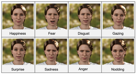 - Wang, I.; Ruiz, J. Examining the Use of Nonverbal Communication in Virtual Agents. Int. J. Hum.–Comput. Interact. 2021, 37, 1648–1673. [Google Scholar] [CrossRef]