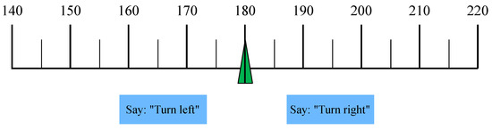 After each traffic encounter, the user conducted a spatial orientation exercise with the AR application. The user saw a compass-strip-hologram which showed the current heading (see Figure 3). Then he/she received a voice command to turn to a new heading (e.g., “Turn heading 090”) and was asked which direction, left or right, was shorter for turning to the new heading. The user responded by saying left or right. The developed app used speech recognition as input for the quiz questions and gave immediate visual feedback for correct or wrong answers. Finally, the application presented as feedback the trainees’ scores.