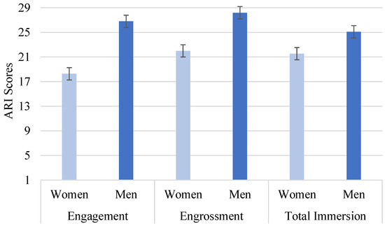 Mean scores of the ARI subscales in female and male trainees from the experimental group that used the AR applications. Error bars represent standard errors.