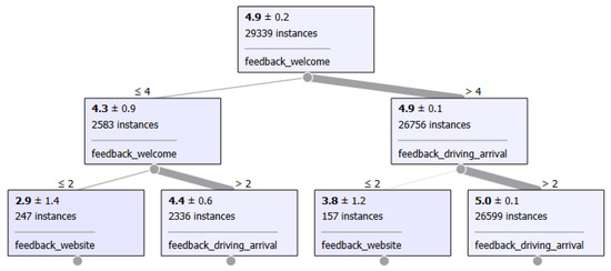 Finally, considering the research question (i.e., How to provide better quality services to (transfer) travel consumers in a way to improve consumers’ satisfaction.), BI tools should be combined with analytical methods, such as DM algorithms, to analyse the feedback produced by customers (either on the numerical form of scores or in the form of textual testimonies). These methods allow us to ascertain the different dimensions associated with the development of tourist activity, whatever its nature. To do so, data analysts should choose a variable that helps to measure or perceive the evaluation of the quality of service by the customer, to be considered a proxy to ascertain the level of customer satisfaction. The component of the analysis of feelings applied to the data is increasingly relevant because it allows us to deepen the analysis of the data, enabling the segmentation of different assessments.