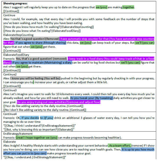 - Beinema, T.; op den Akker, H.; van Velsen, L.; Hermens, H. Tailoring coaching strategies to users’ motivation in a multi-agent health coaching application. Comput. Hum. Behav. 2021, 121, 106787. [Google Scholar] [CrossRef]