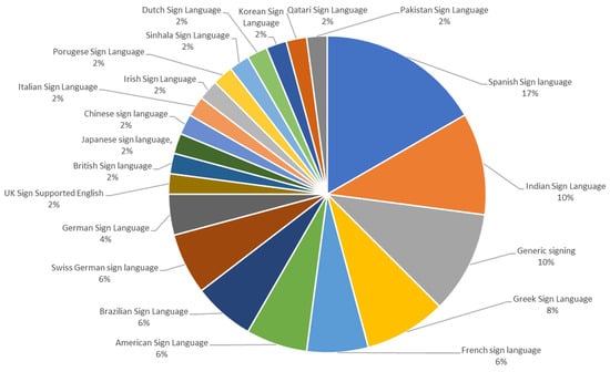 Sign language (SL) is a visual–spatial language containing its own set of syntax and sets of rules that differ largely from spoken languages. SL is also the main mode of communication used by the deaf and hard-of-hearing (D/HH) community around the world. It relies on fingerspelling, hand orientation and movements, facial expressions, and body movements to relay meaning. Around 432 million people and 32 million children have hearing problems and need assistance in learning to live with their condition as reported by the World Health Organization (WHO) []. The WHO further estimates that by 2050, approximately 700 million people may have hearing impairments. Furthermore, SL varies amongst different countries and communities. The World Federation of the Deaf reports that there are over 300 sign languages existing around the world []. These sign languages differ from each other with each SL having its own set of rules and standards for communication. Despite the existence of a large number of sign languages and a significant number of the population suffering from hearing impairments, communication systems and technologies with provision for the deaf and hard-of-hearing community are rarely available. This lack of support towards the D/HH community creates considerable communication barriers for them in many different aspects of their day-to-day lives. Most interactions for D/HH individuals are accomplished with the aid of a sign language interpreter. However, the number of individuals working as SL interpreters is relatively low, leading to high service costs. Some D/HH individuals also opt out of utilizing available SL interpreters due to lack of privacy, which further impacts their access to information especially in cases of emergency [,].