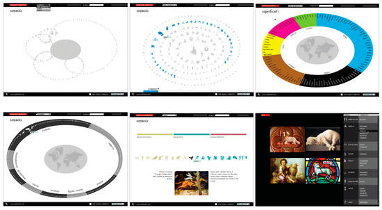 Figure 3. Some screenshots of the multimedia tool Symbolum (by D. Falzone e D. Ghiraldini, supervision: P. Ciuccarelli, R. Trocchianesi, P. Renner).