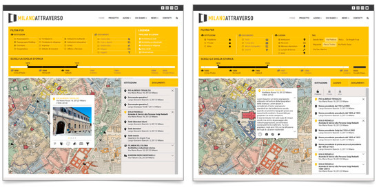 The solution developed for Aspi was then scaled, packaged, and commercialized by Promemoria SRL, an Italian company specialized in Collective Access installation and design. The same approach was then adopted for MilanoAttraverso, where, in addition to the integrated interface system based on WordPress, a module dedicated to geo-localized information on historical pre-geodetic cartography was developed.