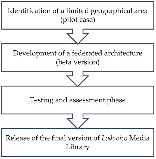 To involve and consider the requirements of the various cultural institutions, a participatory process was adopted. The first group of institutions interested in the project created an “open” consortium that made allowances for the possible arrival of new partners. Participating parties, coordinated by the Interdepartmental Research Centre on Digital Humanities of the University of Modena and Reggio Emilia (https://www.dhmore.unimore.it/, accessed on 20 November 2023), launched a process for the joint definition of the descriptive standards to apply to the digitised heritage. This co-creation process entailed meetings held to define the needs of the various cultural institutions, identify the specific features of the objects to be digitised and create metadata (meaning the information relating to the digitised objects). Additionally, it involved the development of an initial trial release (beta version) and, following an assessment phase, the release of the final version of Lodovico. The partnership was then expanded to the regional level, including institutions that were not involved in the pilot project. In this regard, it should be noted how the assessment and improvement of Lodovico is an ongoing process driven by the arrival of new contributors to the media library and, therefore, the identification of new needs.
