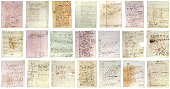 It is evident that the paper support has stains (caused by ink acidification, ink drops, and humidity). It is also noticeable that the text from the underlying page is visible and that there are erasures, corrections, and marginal annotations. The layout of the pages varies, as does the handwriting. All these considerations were then employed as the basis for developing effective HTR algorithms, which will be discussed in the following sections.