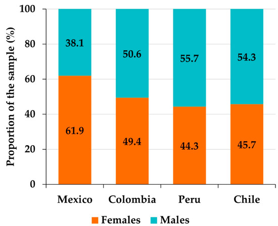 For the purposes of this research, the country of origin of the professors was considered as the main explanatory variable, which is a nominal polytomous variable with possible values Mexico, Colombia, Peru, and Chile. Likewise, the following secondary explanatory variables were defined as nominal dichotomous variables: (i) gender, females and males, and (ii) knowledge area, scientific-technical and humanistic-social.