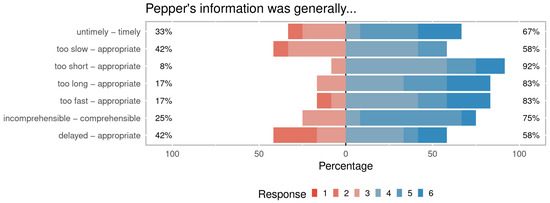 After each instruction, participants replied to the robot by indicating that they “understood” the instruction, that they “not understood” and needed the robot to repeat the instruction, or that they were “uncertain” about the instruction (but would still try to execute it). Figure 6 visualizes the participant’s self-assessment of the understanding of Pepper’s instructions.