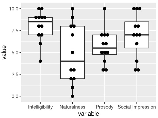 - Lewis, J. Investigating MOS-X Ratings of Synthetic and Human Voices. Assoc. Voice Interact. Des. 2018, 2, 1–22. [Google Scholar]