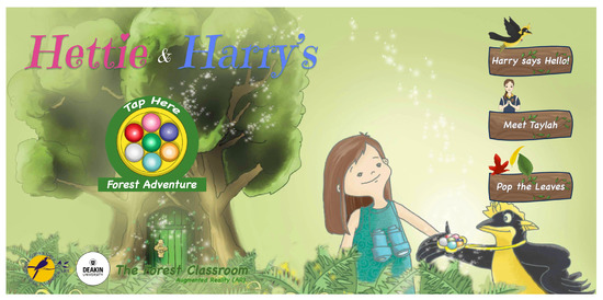 Adoption of AR technology in a school classroom requires that AR experiences be designed with curriculum and pedagogy in mind [51]. The theme chosen, related to nature and forest care, allows students to identify concerns around deforestation and explore how they can play a part in saving the forest as responsible individuals. This integrates with numerous resources already developed by teachers as part of the school’s Kinder-to-Prep Bridging curriculum, to make the transition from outside kindergartens an enjoyable and engaging experience. The message that the book promotes of how the forest animal characters persevere together to protect their home environment addresses the curriculum topics and provides role models for restless students.