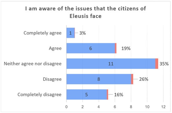 - “I am familiar with the issues the citizens of Eleusis face”: AV = 2.7, SD = 1.1 (Figure 3).