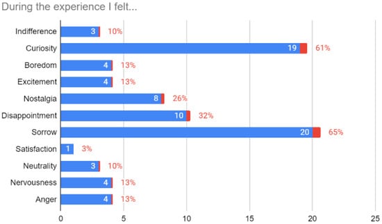 Curiosity was also one of the strongest feelings evoked by the experience, as stated by 61% of the participants (Figure 5).