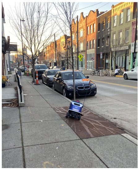 - Jennings, D.; Figliozzi, M. Study of sidewalk autonomous delivery robots and their potential impacts on freight efficiency and travel. Transp. Res. Rec. 2019, 2673, 317–326. [Google Scholar] [CrossRef]