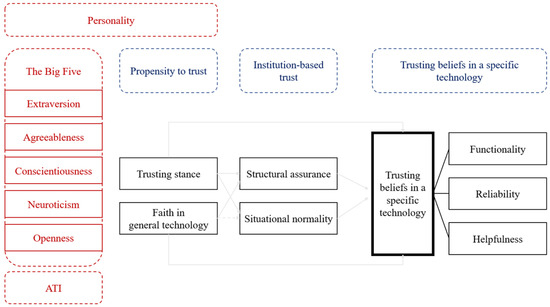 - H-B02: Agreeableness positively correlates with trusting beliefs in a specific technology.