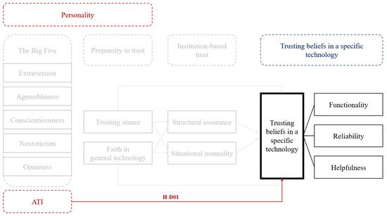 - H-D01: ATI positively correlates with trusting beliefs in a specific technology.