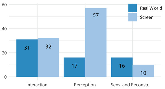 All findings were assigned to one of the three (main) categories perception, interaction, and sensing and reconstructing reality. The assignment of each subcategory to the appropriate category was carried out by two people independently. The cases that differed between the two judgments were discussed again until a decision could be made. When necessary, a subcategory, such as efficiency, was assigned to more than one main category.