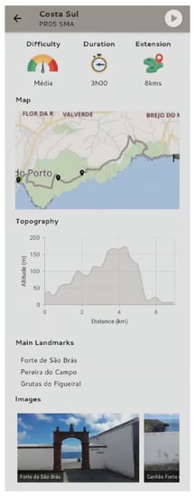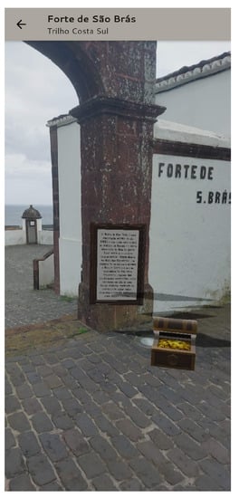 Although the proof of concept was successful, this application can always be improved by integrating new features and taking into account the suggestions of the participants in the evaluation. Thus, adding more trails and routes on the island and information (textual and audio on the AR side) about them would be the first step to extending the reach of this application. This information would be added as a new functionality of the administrator role. In addition, the possibility of downloading a priori information about the trail would be an added value in a way that there is no constant need to connect to the internet to acquire the information, since, in some parts of the island, connectivity is not always possible. It could also be a way to reduce the time of downloading and rendering virtual objects. The modeling of virtual objects even more related to the history of the island would further motivate the target audience to observe them through the mobile application.