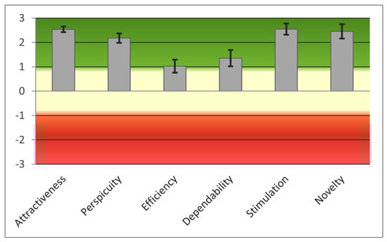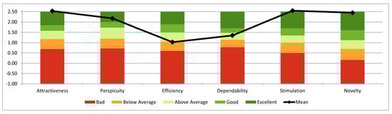 UEQ is used to evaluate the user experience, and it consists of 26 pairs of opposite adjectives related to the properties of the application. It is intended to be answered as spontaneously as possible since immediate evaluation is the most important thing for this type of questionnaire. Using this procedure, the mobile application is evaluated according to six parameters: Attractiveness, Perspicuity, Efficiency, Dependability, Stimulation, and Novelty.