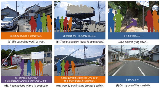 Evacuation differs with disaster types. For example, individuals may have time to consider the best evacuation process after a typhoon is predicted; if the current place is safe, evacuation may not be necessary. In contrast, prompt decisions are critical in an earthquake and the resulting tsunami to avoid loss of life and property. Evacuation in unpredictable disasters is more challenging than in predictable disasters as it requires prompt and proper decisions against sudden crises. An evacuation process in building fires is represented as three phases in the timeline: detection, alarm, and evacuation [27]. In this process, individuals may recognize fire occurrence by hearing a fire alarm, respond to the surrounding hazards (e.g., removing immediate dangers), and begin moving to a safe place.