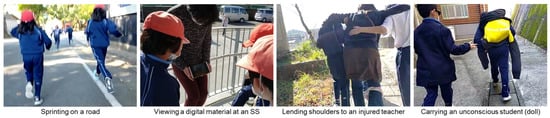- Hatakeyama, H.; Nagai, M.; Murota, M. A flexible scenario-based mobile learning system for disaster evacuation. In Proceedings of the HCI International 2016—Posters’ Extended Abstracts. HCI 2016. Communications in Computer and Information Science, Toronto, ON, Canada, 20–22 July 2016; Stephanidis, C., Ed.; Springer: Cham, Switzerland, 2016; Volume 618, pp. 360–364. [Google Scholar] [CrossRef]