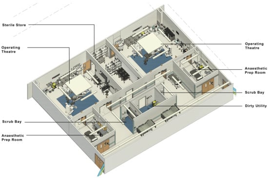 - Australasian Healthcare Facility Guidelines. Operating Unit. Available online: https://healthfacilityguidelines.com.au/hpu/operating-unit-1 (accessed on 4 August 2018).