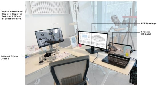 In a previous scenario-based study [], end-users compared the effectiveness of four different architectural communication modes: (1) 2D plans; (2) printed 3D perspectives accompanied by plans; (3) physical mock-up; and (4) virtual reality mock-up. The physical mock-up was deemed the most useful mode of communication, followed by VR mock-ups with 2D plans, and 3D perspectives were the least useful. The study [] identified a lack of fidelity as a reason for the VR platform performing lower than expected. The VR mock-up elicited the fewest design suggestions, while the physical mock-up elicited the most. The authors conclude that the four different modes of communication could be used to complement each other, as they all illustrated different aspects of the design.