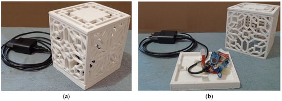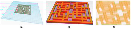Fabrication preparation was conducted in UltiMaker Cura ver. 5.3.1 (Ultimaker B.V., Utrecht, The Netherlands). PLA material was used, with a wall thickness of 0.2 mm in two layers. The print speed was 70 mm/s. Padding was of the grid type. The extruder temperature was 210 °C, and that of the work table was 40 °C.