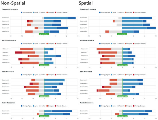 34], organised by subscales for physical, social and self presence. Additional audio-specific items adapted from Witmer and Singer’s [