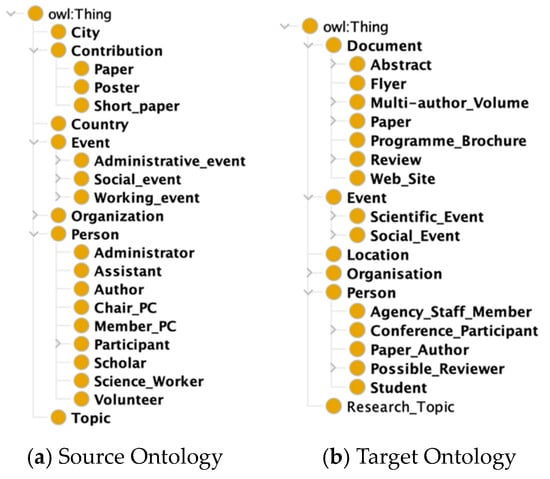 69], where two different domains, including the Conference track and the Biomedical Ontologies track, were used in the studies presented in this paper. The source and target ontologies in the Conference domain have 74 (38 classes, 13 object properties, and 23 datatype properties) and 110 entities (77 classes and 33 object properties), respectively. The source and target ontologies in the Biomedical domain have 89 and 181 classes (no other types of entities but include 2 and 4 occurrences of multiple inheritances), respectively. The mappings given to the participants were generated based on the gold standards but modified to include incorrect and incomplete mappings to simulate a task environment to engage the participants. In each domain, the mapping set presented to the participants always contained the same number of correct, incorrect, and incomplete mappings. More specifically, there are 13 correct mappings, 3 incorrect mappings, and 7 incomplete mappings in a mapping set given to the participant in each domain. Such a setup aims to reduce the potential influences of additional variables on user performance such as time on task, where if a participant took longer to complete the evaluation, which was not due to this person needing to work through a greater number of mappings in the given task.
