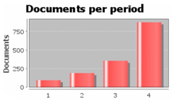 A total of 96, 191, 356, and 872 documents were recorded for the four periods, respectively.