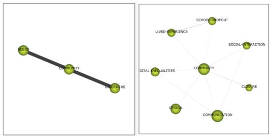 When analyzing the four periods, it becomes evident that the emergence of new topics and the increasing number of core themes represent a trend in the study of AI from a social sciences perspective. A fundamental element is the role of the community, which stands as one of the main subjects of sociological study (Figure 10). In this regard, there is a noticeable evolution: from being a marginal topic in the first period, associated with underdeveloped issues, to becoming an emerging theme connected to subtopics that directly address the lived experience of school dropout, communication in social interaction, digital inequalities, and, finally, the design and closure of unrelated subjects. Future studies should delve deeper into the development of this emerging theme, and greater efforts should be made to ensure that sociological issues surrounding inequality take on a more prominent role in studies on education and technology.