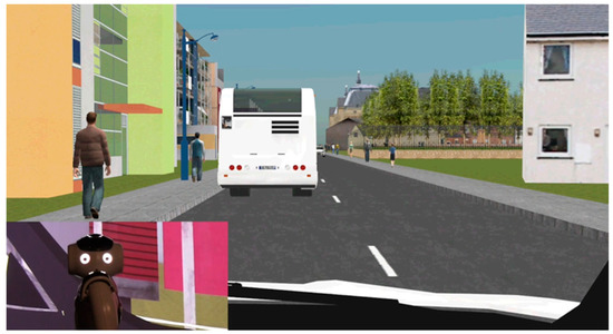 The driving scenario was generated using the Simulation Software Generated Animation (SSGA) method [17,30]. The SSGA was created using cutting-edge driving simulation software SCANeR Studio (2021.2) and within a bespoke driving simulator designed, developed, and built by AV Simulation (Figure 1).