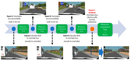 Some research has already shown that different patterns of trust and blame exist between humans and AI agents. Ref. [30] demonstrated that AVs and human drivers are blamed differently for the same incident. In five out of six cases (e.g., involving pedestrians or animals stepping onto the road), AVs were blamed to a greater extent than human drivers. In one scenario, this effect reversed: where the AV or human-driven vehicle was overtaking a stopped bus, and a pedestrian stepped out from in front of it, violating the UK Highway Code. In this case, the human driver was blamed more than the AV. It was postulated that the ‘bus’ scenario differed from the others in that it had stronger potential causal cues that an accident could happen (e.g., the parked bus obstructed the view of the pavement, it had stopped at a bus stop such that passengers may have been disembarking) and therefore human intuition about the scenario and possible risks (despite the Highway Code rules) would have potentially resulted in a non-overtake decision. The other five scenarios involved immediate actions by a third party (e.g., a person suddenly stepping out into the road of a falling tree) and required immediate reactions by the AV. Despite the AV not being able to safely stop in time to avoid the incidents, the time to react should be a strength of this technology over a human driver. Further investigations into causal cues confirmed this is a contributing factor to the difference in assignment of blame and trust [17].