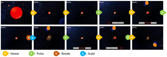 Each participant was briefed on the basic interactions they could perform with HoberUI and what actions was mapped to in the solar system demonstrator application. The participants were allowed to familiarize themselves with the interactions, viz., rotate, scale, heave for object manipulation and pulse for triggering/exiting the menu. They were then asked to complete four tasks, one after the other. The tasks were as follows: