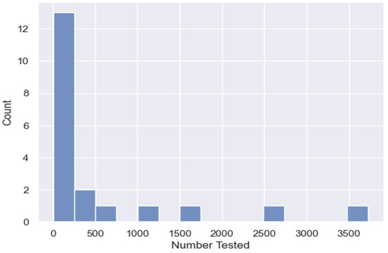 Number of districts per group of number of students tested.