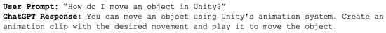Illustration of a part of the P4’s unsuccessful interaction with ChatGPT: While P4 already had a script-managed movement system, incorporating animation (recommended by ChatGPT) proved challenging. P4’s vague prompt led to generic advice, causing conflicting functions to override each other.