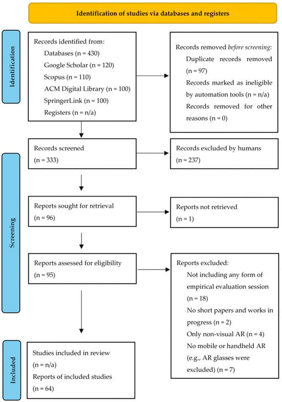 Eligibility criteria: The paper corpus consists of full papers that describe mobile applications that promote CH with AR technology. The publication dates of the papers are within [2016, 2023]. We set 2016 as the starting year because it was then that many mobile software frameworks and AR-capable devices were released. All papers had to include a section on empirical evaluation.