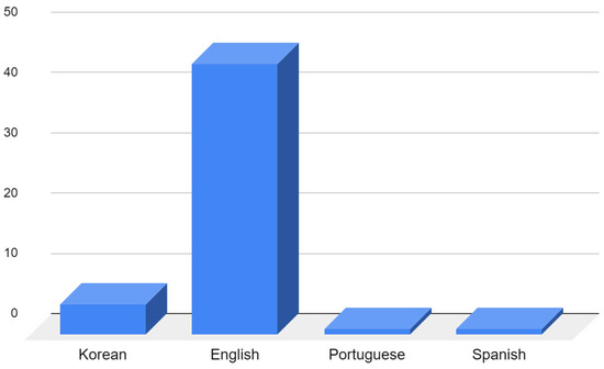 It is noteworthy that, despite the aforementioned classification, the majority of the documents analyzed were written in English (86.54%), as this is the international language for sharing research. Furthermore, 9.62% of the total were published in Korean, which is the second most prevalent language among the articles in the study. The languages with the lowest number of publications on this topic were Portuguese and Spanish, both with 1.92% of the documents, as illustrated in Figure 5.