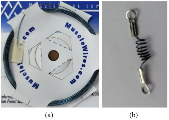 SMA actuator: (a) the SMA wire and (b) the deformed wire in the form of a spring (a diameter of 5 mm and a helical pitch of 0.5 mm).