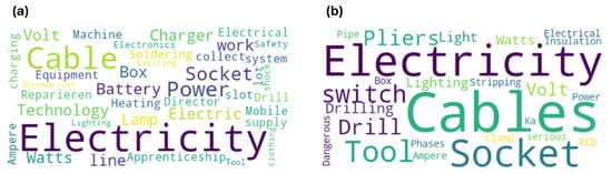 Most frequently mentioned words when thinking of an electrician (a) before and (b) after playing the VR application.
