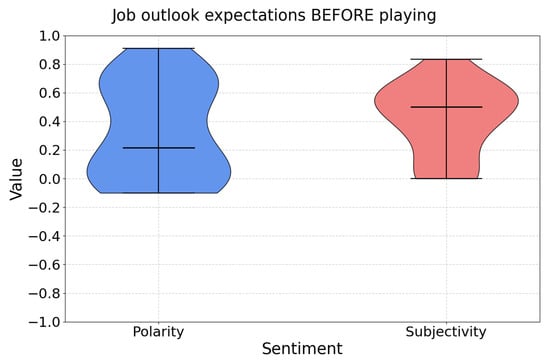 Sentiment on the job outlook expectations before playing the VR app with polarity from −1 (negative) to 1 (positive) and subjectivity from 0 (objective information) to 1 (personal opinion).