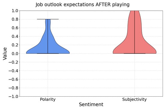Sentiment on the job outlook expectations after playing the VR app with polarity from −1 (negative) to 1 (positive) and subjectivity from 0 (objective information) to 1 (personal opinion).