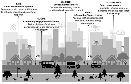 - Social: Emphasizes social inclusion, quality of life, and equitable access with concepts like the ’societal smart city’ introduced by Alizadeh and Sharifi [33].