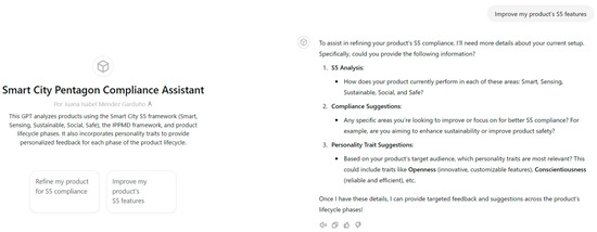 - Méndez, J.I. ChatGPT—Smart City Pentagon Compliance Assistant. Available online: https://chatgpt.com/g/g-7SqJsJoeF-smart-city-s5-compliance-assistant (accessed on 4 October 2024).