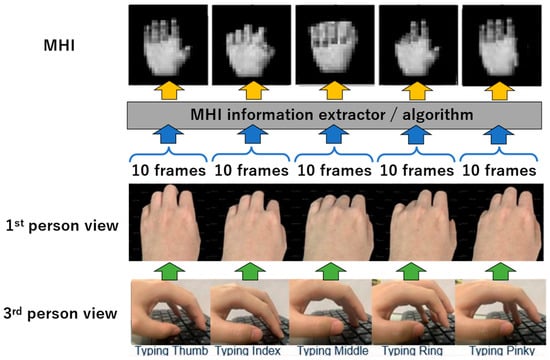 Motion history image (MHI) is a valuable concept in computer vision, specifically designed for capturing and representing temporal information in video sequences []. It plays a crucial role in motion analysis, allowing for extracting meaningful patterns related to object movements over time. MHI is a chronological representation of motion in a sequence of images, emphasizing the recency of pixel changes. It assigns higher pixel values to regions where motion has occurred more recently, creating a visual representation of the temporal evolution of movement within a video. The formula is as follows []: