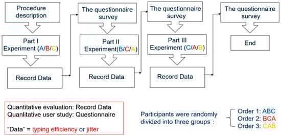 Furthermore, many existing solutions do not support using a physical keyboard, which can disrupt users’ typing habits and cause inconvenience. Studies like those by Fourrier et al. [] and Kim et al. [] analyze gesture-based VR typing systems, highlighting the limitations of using virtual keyboards that deviate from traditional physical keyboard experiences. To preserve a familiar and comfortable experience, our research focuses on using a physical keyboard with 3D tactile feedback, aligning with the principle of “easy adaptation for users with keyboard input experience”.