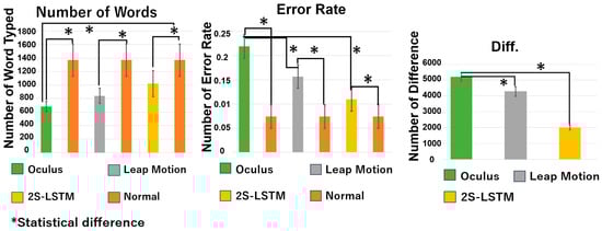 | Normal (n = 9) | 2S-LSTM (n = 9) | Leap Motion (n = 9) | Oculus Quest 2 (n = 9) | |||