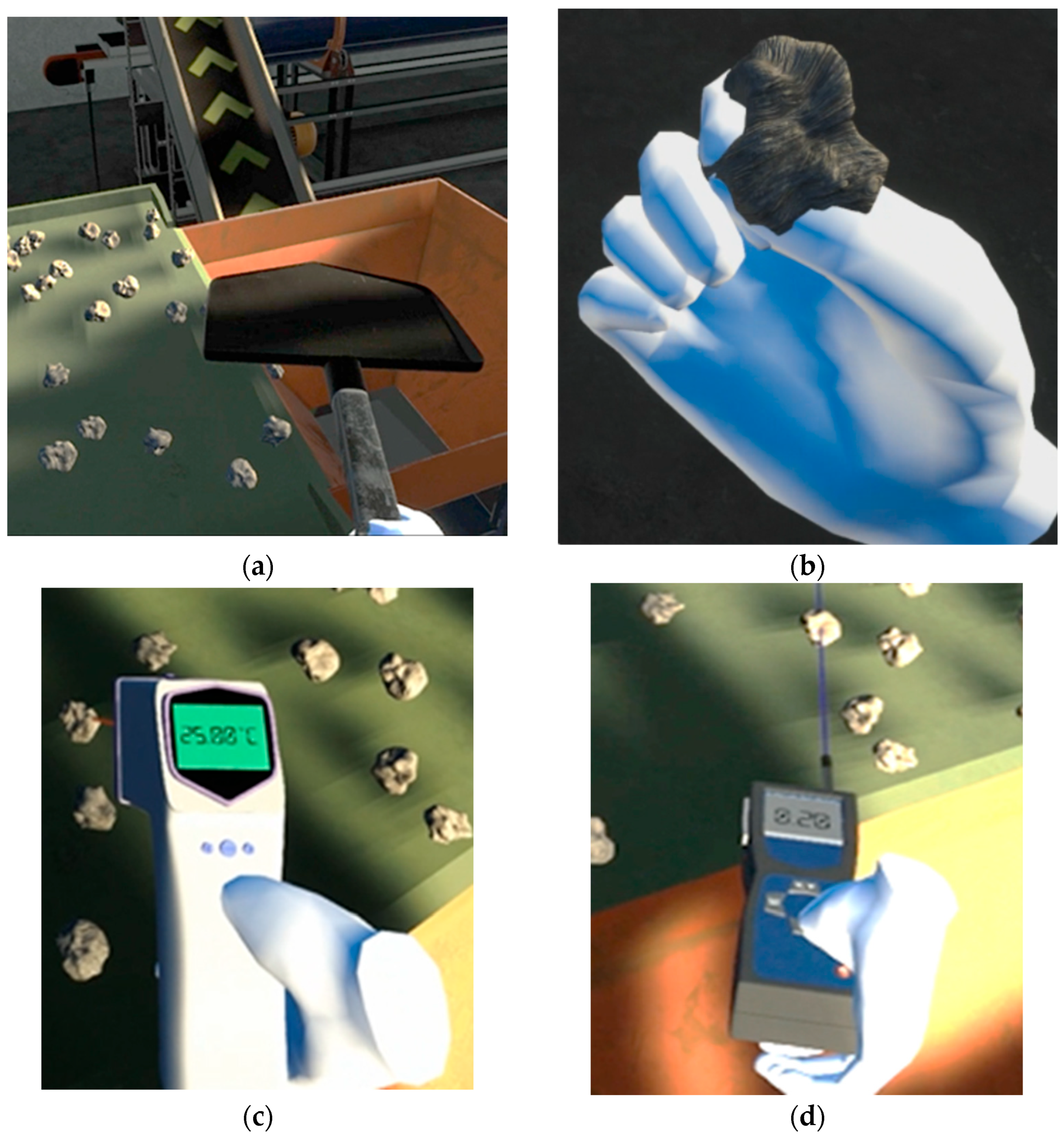 4.1. Results of Visual Aspects of the Proposed VR Environment